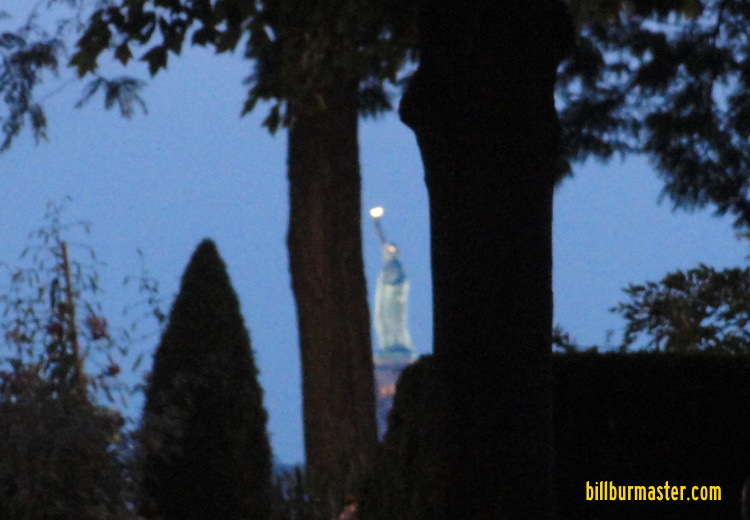 Looking at the Statue of Liberty from Battery Park in Lower Manhattan.