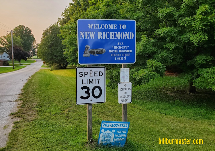 ![]() | The welcome sign as your come into New Richond, IN. New Richmond was the town used as the fictional town of Hickory in the movie Hoosiers. (July, 2024) |