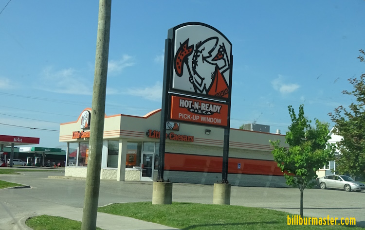 | Little Caesars | ![]() A highway sign on NB I-55 at Diamond, IL. (September, 2018) | ![]() A highway sign on WB I-80/94; U.S. 6 in Gary, IN. (March, 2023) |