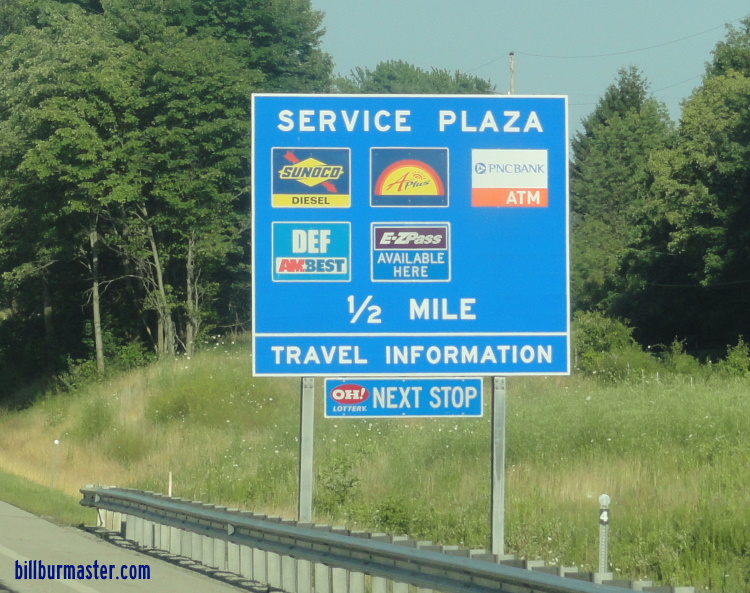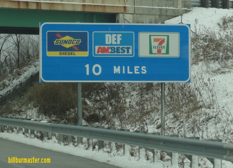 | Sunoco | ![]() A highway sign on WB I-80/90 at Portage, IN. (November, 2018) | ![]() A highway sign on NB U.S. 31 at Niles, MI. (August, 2020) | ![]() A highway sign on EB I-76/Pennsylvania Turnpike, near Bedford, PA. (April, 2025) |