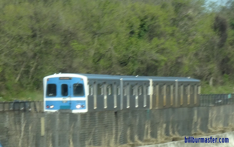 Looking at a Baltimore Metro SubwayLink train along, I-795. (April, 2025)