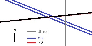 Just north of the Portage exit on the Indiana East-West Toll Road, and south of the Indiana 249 exit on Interstate 94 is the crossing between the Norfolk Southern and the CSX. The Norfolk Southern line runs along the former New York Central line. While the CSX line runs along the former Baltimore & Ohio railroad. The main road between the two highways is elevated over both rail line,; yet the crossing is just east of the grade crossing with Willowcreek Road.