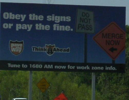 Sign at the end of a work zone on I-30, southwest of Little Rock.