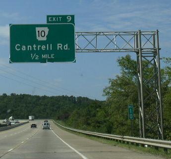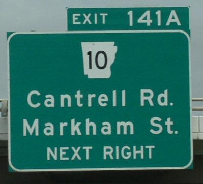 BGS on EB I-30. Junction marker on SB U.S. Rt. 70B/AR St Rt 365 in Downtown Little Rock. BGS on SB I-430. Looking southeast to the I-430 interchange with AR St Rt 10. Looking east along AR St Rt 10, west of I-430.