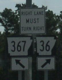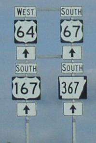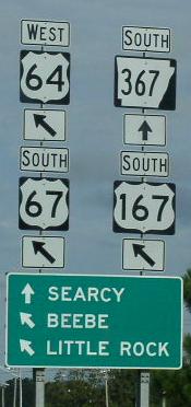SB AR St Rt 367 near Judsonia. SB AR St Rt 367 north of Searcy. A junction marker in Searcy. SB AR St Rt 367 in Searcy. SB AR St Rt 367 near a rail crossing in Searcy. BGS on WB U.S. Rt. 64/SB U.S. Rt. 67/167 in Searcy.