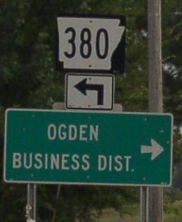 Arkansas State Route 380 runs in two sections in Little River County. The first section is in the northwestern portion of the county. It runs from the Oklahoma/Arkansas State Line to Arkansas State Route 41. There is a short spur runs east-west near Ogden.