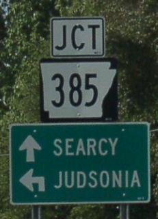 Arkansas State Route 385 runs completly in White County. This highway has two sections. The first section runs south from Plainview and curves east to Jusdonia, before heading back north to Arkansas State Route 367. The next section is closer to Searcy. It starts at Arkansas State Rotue 367 and head south into Kensett, and down to Griffithville.