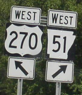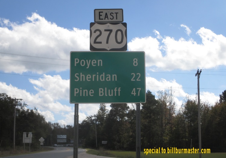 SB U.S. Rt. 270, near Diamondhead. SB U.S. Rt. 270, near Magnet Cove. SB U.S. Rt. 270, north of I-30. BGS on WB I-30. An EB guide marker east of Perla. Photo from: Paul Dienhart