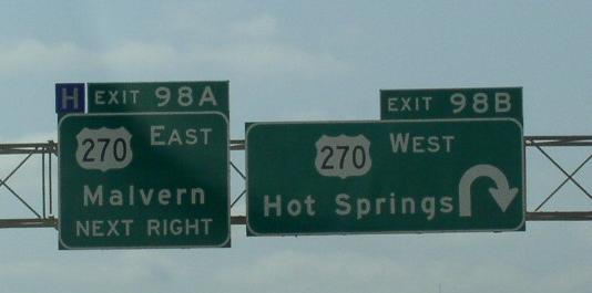 A by-pass around Malvern opened in early 2006. It is signed as U.S. Rt. 270. The orignial portion will become U.S. Rt. 270B. A connection to U.S. Rt. 270 on the north side of Malvern. For a short time U.S. Rt. 270 will run un-signed along I-30.* U.S. Rt. 270 passes through the following towns in Hot Springs County. Perla Malvern