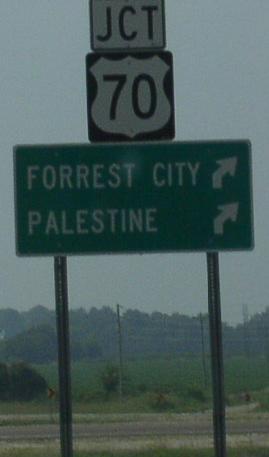 EB U.S. Rt. 70 near Forest City. A junction marker on SB AR St Rt 1.