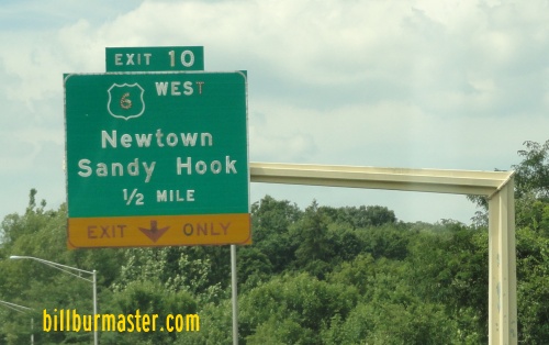 U.S. Federal Route 6 runs east-west across Fairfield County. It enters from New Haven County, near Sandy Hill, and runs west to the New York State Line. U.S. Rt. 6 passes through the following towns in Fairfield County. Newtown Danbury U.S. Rt. 6 is multi-plexed in Fairfield County. Interstate 84, from the New Haven County Line to near Sandy Hill. Connecticut State Route 25, near Newtown. Interstate 84, at Danbury. U.S. Rt. 7, at Danbury. U.S. Rt. 202, at Danbury.