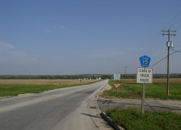 NB LSCH 15 at the La Salle/Livingston County Line. SB LSCH 15 near IL St Rt 18. SB LSCH 15 north of Kernan. LSCH 15 is also known as Joe Hettel Road for a portion of time in Southern La Salle County. NB LSCH 15 north of LSCH 5. SB LSCH 15 south of Marseilles. NB LSCH 15 south of Marseilles. The Illinois River at Marseilles. NB LSCH 15 north of Marseilles. SB LSCH 15 at LSCH 4. SB LSCH 15 south of I-80. BGS on EB I-80. This is the exit for LSCH 15. A BGS on EB I-80. NB LSCH 15 north of I-80.