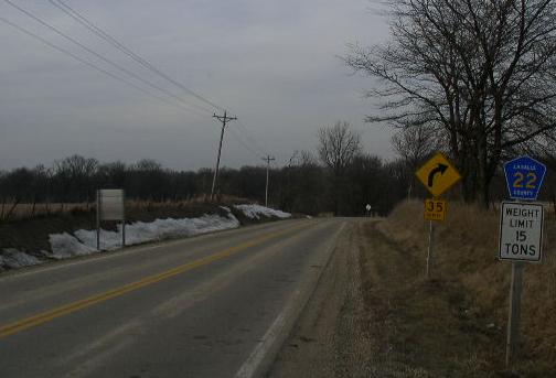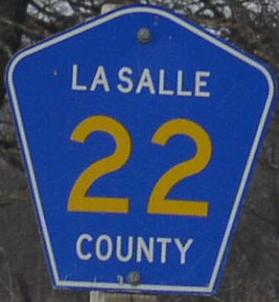 La Salle County Highway 22 runs east-west in North-Central La Salle County. It runs from near Cheif Shabbonna Park to near Sheridan. LSCH 22 does not pass through any towns in La Salle County. LSCH 22 intersects the following highways in La Salle County. La Salle County Highway 1, near Harding. Illinois State Route 23, near Baker. La Salle County Highway 2, near Sheridan.