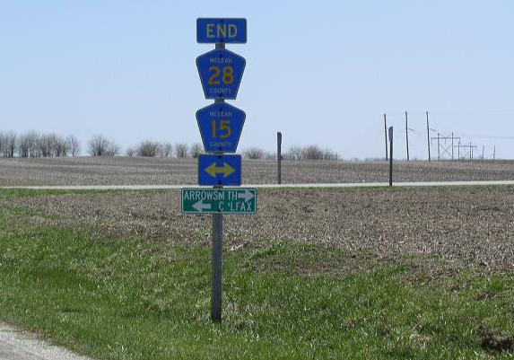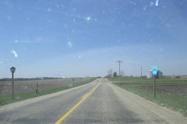 The eastern end of Mc LCH 28. The eastern end marker. WB Mc LCH 28 west of Arrowsmith. SB Mc LCH 17/WB Mc LCH 28 north of Ellsworth. A junction marker on McLCH 28. A junction marker on McLCH 28. WB Mc LCH 28 west of Ellsworth. WB Mc LCH 28 west of Mc LCH 21. NB Mc LCH 25/WB Mc LCH 28 near Holder. Junction sign on Mc LCH 25 near Hudson. The western end of Mc LCH 28. The western end marker.