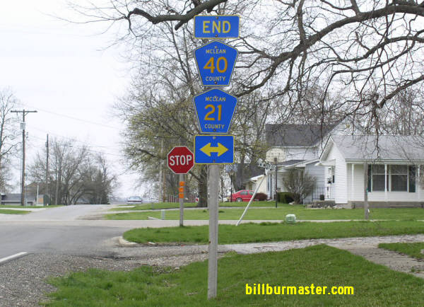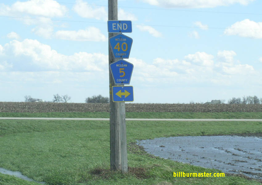 Mc Lean County Highway 40 is a east-west highway in Southeastern Mc Lean County. It runs from Le Roy to near Bellflower. Mc LCH 40 passes through the following town in Mc Lean County. Le Roy
