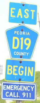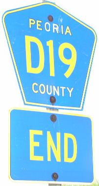 Peoria County Highway D19 is a east-west highway. This runs from Illinois State Route 40/90 near West Hallock to Illinois State Route 29 at Chillicothe. PCH D19 passes through the following town in Peoria County. Chillicothe PCH D19 intersects the following local roads in Peoria County. Illinois State Route 90, near West Hallock. Illinois State Route 40, near West Hallock. Peoria County Highway R60, near New Hampton. Peoria County Highway R60, near New Hampton. Illinois State Route 29, at Chillicothe. PCH D19 is multi-plexed in Peoria County. Peoria County Highway R60, near New Hampton.