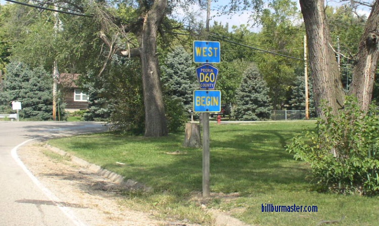 Peoria County Highway D60 is an east-west highway in Southern Peoria County. It runs from U.S. Rt. 24/Illinois State Route 9, near Mapleton to the Fulton/Peoria County Line, near Glasford. PCH D60 passes through the following towns in Peoria County. Mapleton Lancaster PCH D60 is not multi-plexed in Peoria County. PCH D60 intersects the following highways in Peoria County. U.S. Rt. 24, at Mapleton. Illinois State Route 9, at Mapleton. Peoria County Highway R39, near Mapleton. Peoria County Highway R36, near Kingston Mines. Peoria County Highway R34, at Glasford. Peoria County Highway R33, at Glasford. Peoria County Highway R25, near Lancaster.