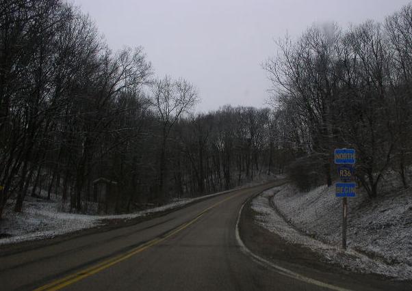 NB PCH R36 north of U.S. Rt. 24/IL St Rt 9. The NB begin marker. The southern end marker.
