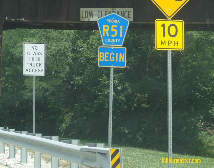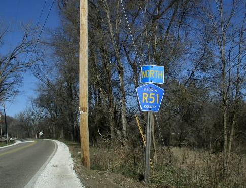 Peoria County Highway R51 is a north-south highway in Metro-Peoria. This runs from U.S. Rt. 24 at Bartonville to a point south of Pottstown. PCH R51 passes through the following town in Peoria County. Bartonville PCH R51 crosses the following highways in Peoria County. U.S. Rt. 24, at Bartonville. Interstate 474, near Bartonville. (NO INTERCHANGE) Illinois State Route 116, near Bellevue. (NO DIRECT INTERCHANGE)