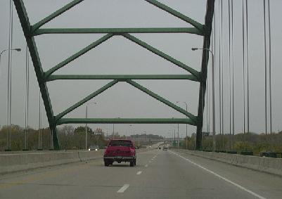 The Abraham Lincoln Memorial Bridge is a new structure over the Illinois River Valley at LaSalle-Peru on Interstate 39/U.S. Rt. 51. PIctures are below. Looking at the bridge from IL St Rt 351.