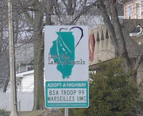 ![]() | The new Adopt-A-Highway sign in Illinois. This sign is on WB U.S. Rt. 6 in Marseilles. (February, 2006) |