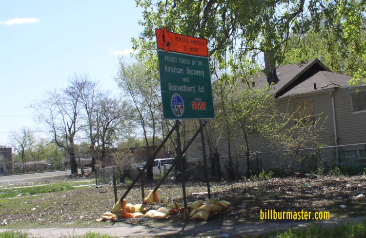 ![]() | A sign for a work project paid for by tax dollars from the Revocery Act. This sign is on 111th Street in Chicago, IL. (April, 2010) |