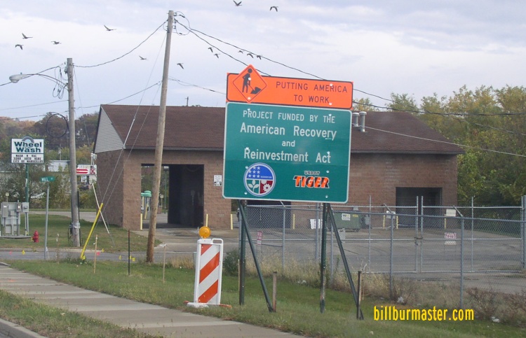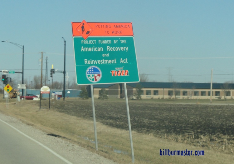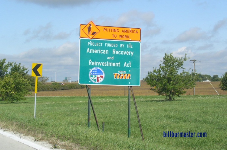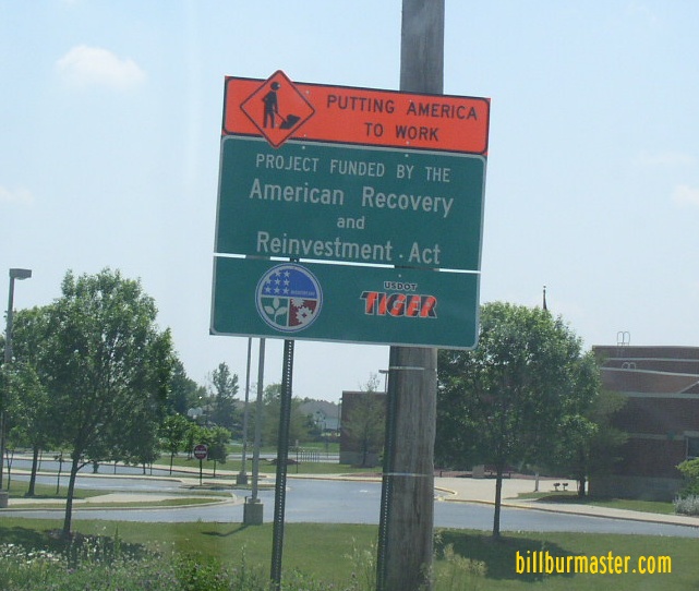 ![]() | A sign for a work project paid for by tax dollars from the Revocery Act. This sign is on WB Will County 20 near Peotone, IL. (Septmeber, 2009) |