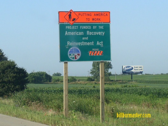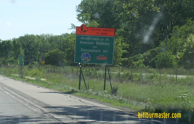 ![]() | A sign for a work project paid for by tax dollars from the Revocery Act. This sign is on NB I-55, near Shirley, IL. (February, 2010) |