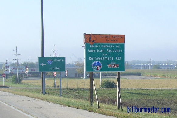 ![]() | A sign for a work project paid for by tax dollars from the Revocery Act. This sign is in Wilmington, IL on NB I-55. (June, 2010) |