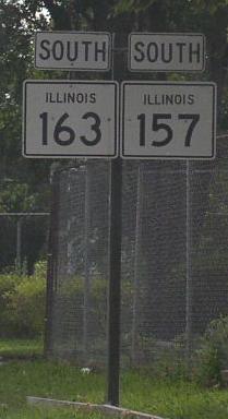 The western end at IL St Rt 15. The western end marker. A St. Clair County mile marker. A junction marker on WB IL St Rt 13/SB IL St Rt 157. NB IL St Rt 157/163 south of IL St Rt 13. SB IL St Rt 157/163 in Centreville. NB IL St Rt 157/163 north of SB IL St Rt 163. SB IL St Rt 163 near Westview. A junction marker on WB IL St Rt 158. The eastern end of IL St Rt 163. The eastern end marker.