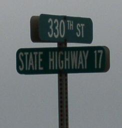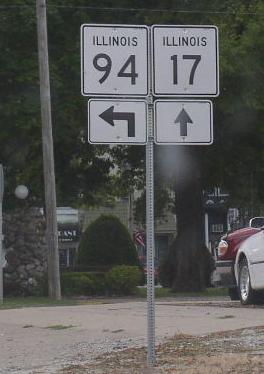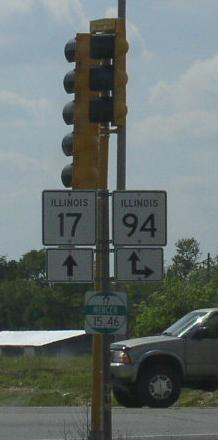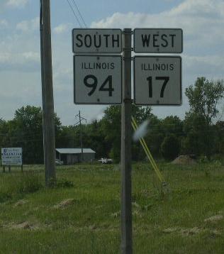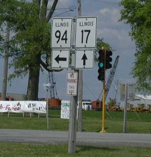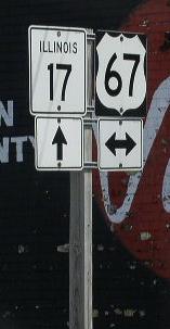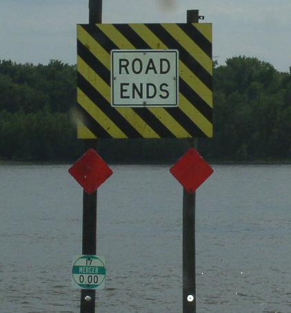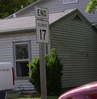 A Mercer County mile marker. WB IL St Rt 17 at the Henry/Mercer County Line. WB IL St Rt 17 in New Windsor. A street sign in New Windsor. WB IL St Rt 17 west of New Windsor. WB IL St Rt 17 in Viola. WB IL St Rt 17 west of Viola. WB IL St Rt 17/SB IL St Rt 94 in Aledo. WB IL St Rt 17 near Joy. WB IL St Rt 17 west of Joy. WB IL St Rt 17 north of New Boston. WB IL St Rt 17 in New Boston. The western end of IL St Rt 17. The western end marker. The road ends marker at the Mississippi River. A close-up of the sign above. This is the exact end of IL St Rt 17.