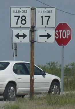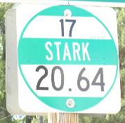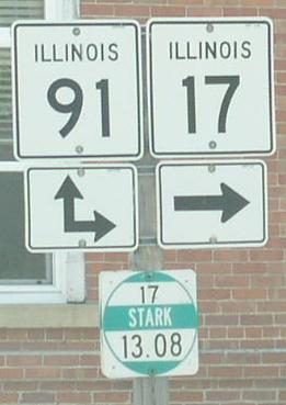 A Stark County mile marker. WB IL St Rt 17 in Toulon. EB IL St Rt 17 at Wyoming. WB IL St Rt 17/NB IL St Rt 78 near La Fayette. WB IL St Rt 17 near La Fayette. WB IL St Rt 17 west of La Fayette. EB IL St Rt 17 at the Knox/Stark County Line.