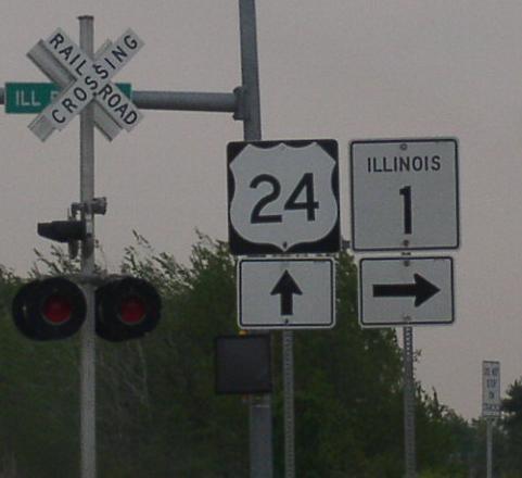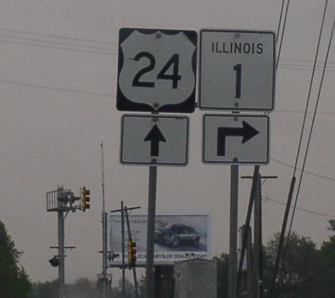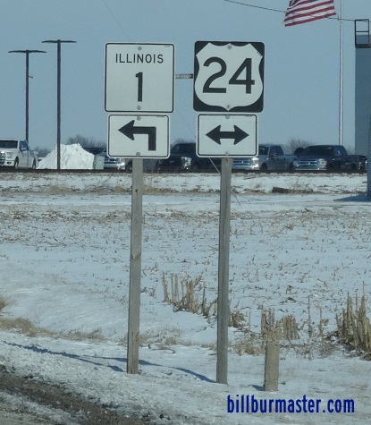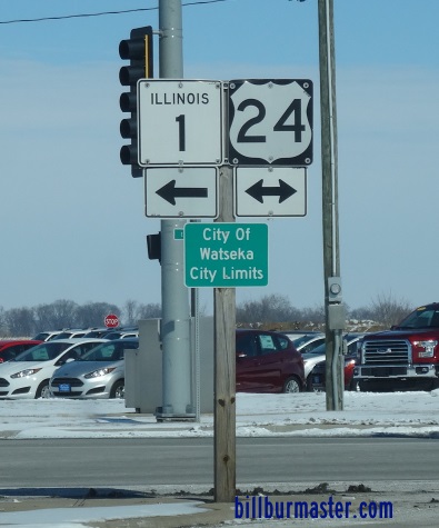IL St Rt 1 is multi-plexed in Iroquois County. U.S. Rt. 24, at Watseka.