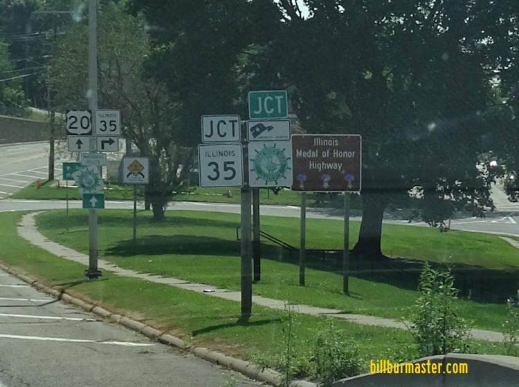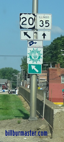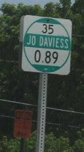 SB IL St Rt 35 at the Illinois/Wisconsin State Line. The first guide sign on NB IL St Rt 35. NB IL St Rt 35 in East Dubuque. A Jo Daviess County mile marker. SB IL St Rt 35 near Clarence in East Dubuque. A junction marker on EB U.S. Rt. 20. The southern end of IL St Rt 35. The southern end marker.