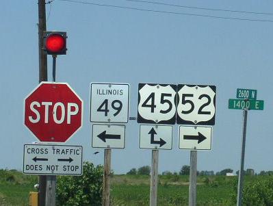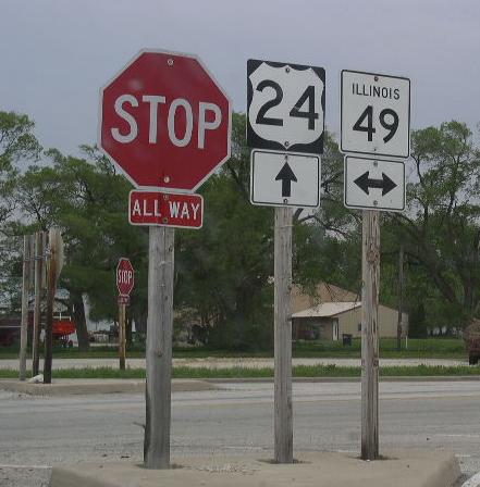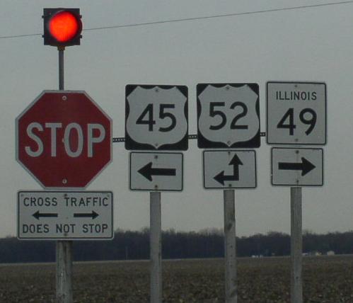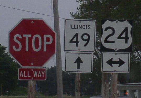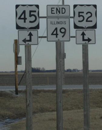 NB IL St Rt 49 at the Iroquois/Vermilion County Line. (July, 2016) NB IL St Rt 49 at the Iroquois/Vermilion County Line. (August, 2024) SB IL St Rt 49 south of Cissna Park. NB IL St Rt 49 in Cissna Park. SB IL St Rt 49 south of Crescent City. SB IL St Rt 49 south of Crescent City. NB IL St Rt 49 south of U.S. Rt. 24. SB IL St Rt 49 north of Crescent City. NB IL St Rt 49 north of Crescent City. Looking north along IL St Rt 49 in Rural Iroquois County. SB IL St Rt 49 south of U.S. Rt. 45/52. SB IL St Rt 49 south of U.S. Rt. 45/52. NB IL St Rt 49 south of U.S. Rt. 45/52. A junction sign on WB U.S. Rt. 52. A junction marker on NB U.S. Rt. 45. A junction marker on SB U.S. Rt. 45/EB U.S. Rt. 52. The northern end point. The northern end marker. The northern end of IL St Rt 49. (May, 2015) The northern end marker. (May, 2015)