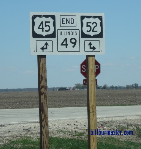 IL St Rt 49 is not multi-plexed in Iroquois County. IL St Rt 49 intersects the following routes in Iroquois County. U.S. Rt. 45 near L'Erable. U.S. Rt. 52 near L'Erable.