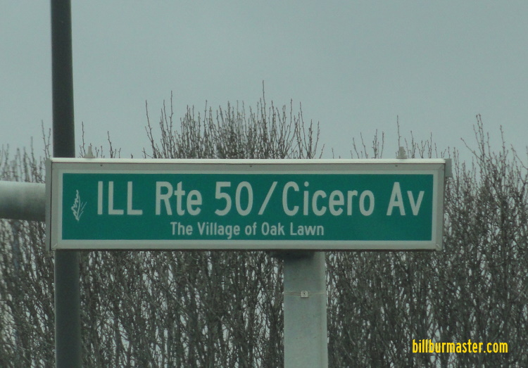 NB IL St Rt 50 at the Cook/Will County Line. NB IL St Rt 50 at Sauk Trail. NB IL St Rt 50 in Matteson. A junction sign on EB U.S. Rt. 30 in Matteson. NB IL St Rt 50 at U.S. Rt. 30. A street sign on EB Vollmer Road. NB IL St Rt 50 north of Vollmer Road. NB IL St Rt 50 at Flossmoor Road. NB IL St Rt 50 north of 183rd Street. NB IL St Rt 50 at I-80. A BGS on NB I-57. A BGS on NB I-57. A BGS on NB I-57. NB IL St Rt 50 in Oak Forest. A junction marker on WB U.S. Rt. 6. NB IL St Rt 50 north of U.S. Rt. 6. NB IL St Rt 50/83 in Crestwood. A junction marker on WB 127th Street. A BGS on NB I-294. A BGS on SB I-294. A BGS on SB I-294. A BGS on NB I-294. A BGS on NB I-294. A BGS on SB I-294. A BGS on SB I-294. A BGS on SB I-294. A BGS on SB I-294. A BGS on SB I-294. A BGS on the ramp from SB I-294. NB IL St Rt 50 north of I-294. NB IL St Rt 50 north of 111th. A guide marker in Oak Lawn. NB IL St Rt 50 north of 103rd. A guide marker in Oak Lawn. A guide marker in Oak Lawn. NB IL St Rt 50 south of 99th. A street sign in Oak Lawn. A junction marker on WB 87th Street in Hometown. NB IL St Rt 50 in Bedford Park. NB IL St Rt 50 on the southeast side of Midway. NB IL St Rt 50 at Midway Airport. NB IL St Rt 50 at a flyover ramp to one of the parking lots. NB IL St Rt 50 at Midway Airport. SB IL St Rt 50 at Midway Airport. NB IL St Rt 50 on the northside of Midway Airport. SB IL St Rt 50 at Midway Airport. SB IL St Rt 50 at Midway Airport. SB IL St Rt 50 at Midway Aiport. SB IL St Rt 50 south of I-55. NB IL St Rt 50 at I-55. A BGS on NB I-55. A BGS on SB I-55. A BGS on NB I-55. A BGS on NB I-55. A BGS on NB I-55. SB IL St Rt 50 at I-55. SB IL St Rt 50 at the Chicago River. NB IL St Rt 50 at 33rd Place. NB IL St Rt 50 at 31st St. BGS's on EB Ogden Ave. A marker on a stop light mast on EB Ogden Ave. A guide markers on the ramp from EB Ogden Ave. to IL St Rt 50. NB IL St Rt 50 at Cermak Road. SB IL St Rt 50 near Cermak in Cicero. SB IL St Rt 50 near 5th in Chicago. A BGS on EB I-290. A BGS on EB I-290. A BGS on EB I-290/IL St Rt 110. A BGS on EB I-290/IL St Rt 110. A BGS on EB I-290/IL St Rt 110. SB IL St Rt 50 near Jackson in Chicago. SB IL St Rt 50 near Chicago Ave in Chicago. SB IL St Rt 50 near Division in Chicago. NB IL St Rt 50 north of IL St Rt 64. SB IL St Rt 50 near Palmer St in Chicago. NB IL St Rt 50 near Melrose St in Chicago. NB IL St Rt 50 at Irving Park Road and Milwaukee Ave in Chicago. A junction marker on WB IL St Rt 19. SB IL St Rt 50 near Sunside in Chicago. NB IL St Rt 50 at Lawrence in Chicago. NB IL St Rt 50 north of I-90 in Chicago. A older style guide sign on Elston Ave. in Chicago. A junction marker on NB U.S. Rt. 14. A BGS on EB I-94. A BGS on EB I-94. The northern of IL St Rt 50. The northern end marker.