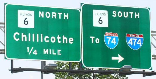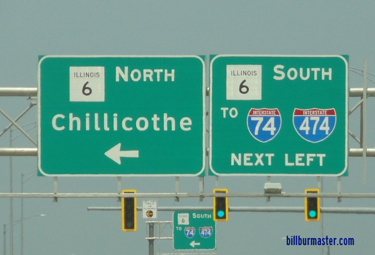 Begin marker on NB IL St Rt 6, just north of the interchange with I-74/474. There are no end markers going either direction. Also, there are no begin markers for SB IL St Rt 6. (This has been replaced) A look at the northern start to IL St Rt 6. The current begin marker. (March, 2005) The speed limit on IL St Rt 6 is 65 M.P.H. the whole length. A BGS on WB I-474. A BGS on WB I-474. A BGS on EB I-74. A BGS on EB I-74 at the I-474/IL St Rt 6 interchange. At the I-74/474, IL St Rt 6 interchange the exits on I-474 and IL St Rt 6 are labeled "A" and "B". A BGS on WB I-74. A BGS on WB I-74. A BGS on WB I-74. A BGS on WB I-74. A BGS on WB I-74. A BGS on SB IL St Rt 6 for I-74/474. A BGS on WB I-474. SB IL St Rt 6 at I-74/474. Looking south along IL St Rt 6 as it nears I-74/474. The first overhead for I-74/474. SB IL St Rt 6 one mile north of I-74/474. SB IL St Rt 6 at U.S. Rt. 150. A BGS on WB U.S. Rt. 150. A BGS on WB U.S. Rt. 150. A BGS on WB U.S. Rt. 150. NB IL St Rt 6 north of U.S. Rt. 150. SB IL St Rt 6 south fo Allen Road. IL St Rt 6 is to interstate standards. Plus, it is very rare for a non-interstate highway in Illinois to have there exits numbered. A BGS on NB Allen Road. A BGS on NB Allen Road. BGS on SB IL St Rt 40 at IL St Rt 6. Note the use of shields for the control city on SB IL St Rt 6. A set of BGS on NB IL St Rt 40. NB IL St Rt 6 going down the bluffs. There are no end markers at this end of IL St Rt 6. All traffic is forced off on to a short four-lane spur to IL St Rt 29. This is the first indication that the highway is ending. The left lane ends as traffic single-files off onto the spur to IL St Rt 29. This is the spur to IL St Rt 29 (which is at the stop-light). BGS on the overhead sign in the picture above. This guides traffic from IL St Rt 29 to the IL St Rt 6 expressway. A BGS on the ramp from IL St Rt 29. A BGS on NB IL St Rt 29. This spur road connects at IL St Rt 6 in a half-completed trumpet interchange. Looking south from the spur road overpass. A closer look at the picture above. You can see where NB traffic is forced off. Looking north from the spur road overpass. The pavement for IL St Rt 6 just ends. IDOT never connected the never used ramp to the main roadway.