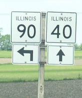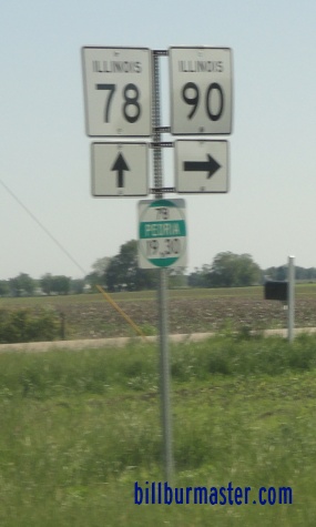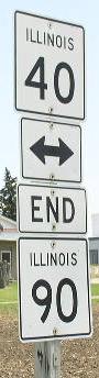 The eastern end marker on IL St Rt 90 near IL St Rt 40. A junction sign on NB IL St Rt 40. The first marker on WB IL St Rt 90 near IL St Rt 40. WB IL St Rt 90/NB IL St Rt 91 at a BNSF Railway underpass near Edelstein. WB IL St Rt 90/NB IL St Rt 91 west of Edelstein. WB IL St Rt 90/NB IL St Rt 91 east of Princeville. WB IL St Rt 90/NB IL St Rt 91 in Princeville. WB IL St Rt 90 on the westside of Princeville. WB IL St Rt 90 west of Princeville. The western end of IL St Rt 90. The western end marker.