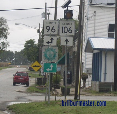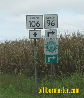 IL St Rt 96 is multi-plexed in Pike County. Illinois State Route 106, from Kinderhook to near Hull.