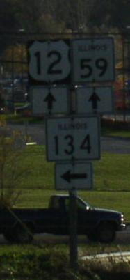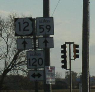 SB U.S. Rt. 12 in Fox Lake. EB U.S. Rt. 12/SB IL St Rt 59 at Fox Lake. A junction marker on EB IL St Rt 22. EB U.S. Rt. 12 in Lake Zurich. EB U.S. Rt. 12 in Kildeer.