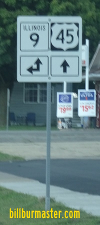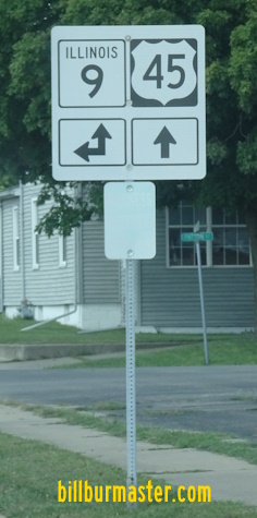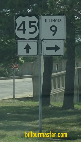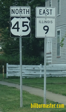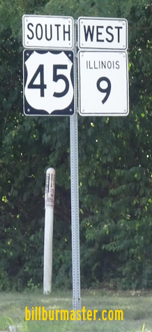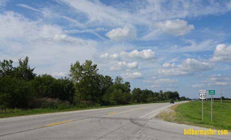 SB U.S. Rt. 45 at the Ford/Iroquois County Line. NB U.S. Rt. 45 north of Paxton. SB U.S. Rt. 45 north of Paxton. A junction marker on SB U.S. Rt. 45/WB IL St Rt 9. SB U.S. Rt. 45/WB IL St Rt 9 in Paxton. SB U.S. Rt. 45 south of Paxton. SB U.S. Rt. 45 south of Paxton. NB U.S. Rt. 45 at the Champaign/Ford County Line.