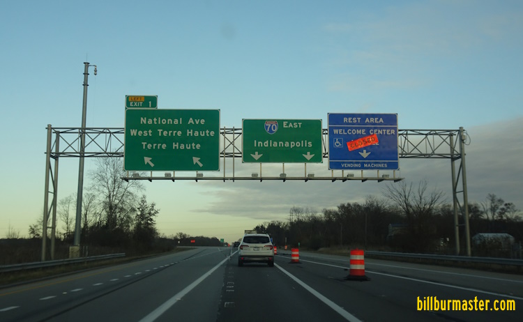 WB I-70/U.S. Rt. 35 at the Indiana Welcome sign. (April, 2025)