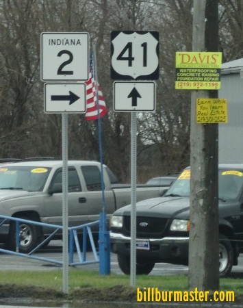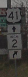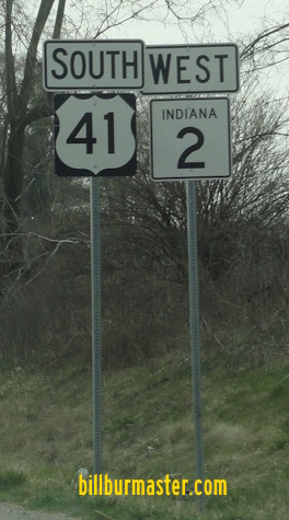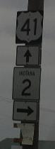 IN St Rt 2 is multi-plexed in Lake County. U.S. Rt. 41 from near North Hayden for 2.6 miles to near Belshaw.