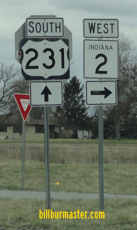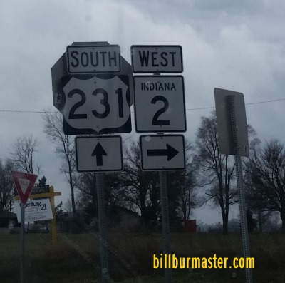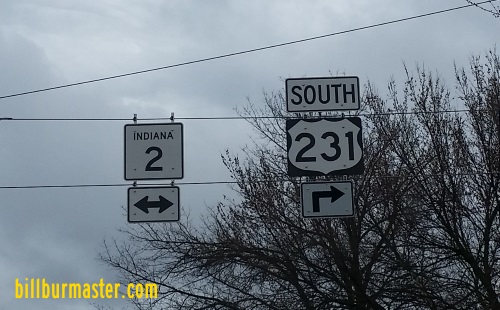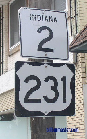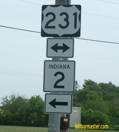 IN St Rt 2 is multi-plexed in Porter County. U.S. Rt. 231, near Hebron.