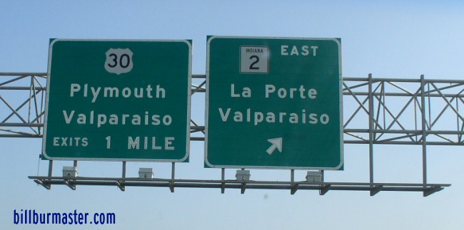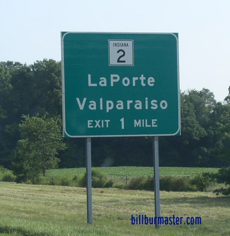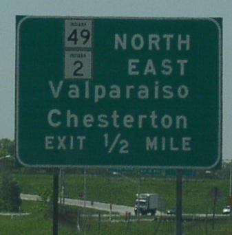 WB IN St Rt 2 near the La Porte/Porter County Line. EB IN St Rt 2 near 600N Road. EB IN St Rt 2 east of IN St Rt 49. A BGS on SB IN St Rt 49. A BGS on SB IN St Rt 49. A guide marker in Valparaiso. EB IN St Rt 2/NB IN St Rt 49 north of U.S. Rt. 30. EB U.S. Rt. 30/IN St Rt 2 at IN St Rt 49. A BGS on EB U.S. Rt. 30/IN St Rt 2. A BGS on WB U.S. Rt. 30. WB U.S. Rt. 30/IN St Rt 2 at Valparaiso. A guide marker on WB U.S. Rt. 30/IN St Rt 2. EB IN St Rt 2 south of U.S. Rt. 30. EB IN St Rt 2 west of Valparaiso. EB IN St Rt 2 east of Hebron. A junction marker on SB U.S. Rt. 231. SB U.S. Rt. 231/WB IN St Rt 2 in Hebron. SB U.S. Rt. 231/WB IN St Rt 2 in Hebron. SB U.S. Rt. 231/WB IN St Rt 2 south of Hebron. SB U.S. Rt. 231/WB IN St Rt 2 at south U.S. Rt. 231. A junction marker on NB U.S. Rt. 231. WB IN St Rt 2 near the Lake/Porter County Line.