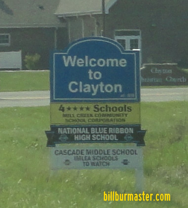 A BGS on WB I-74. A BGS on EB I-74. NB IN St Rt 39 south of east U.S. Rt. 36. NB IN St Rt 39 north of Clayton. NB IN St Rt 39 near Ohio Street in Clayton. NB IN St Rt 39 south of Clayton. A junction marker on EB U.S. Rt. 40.