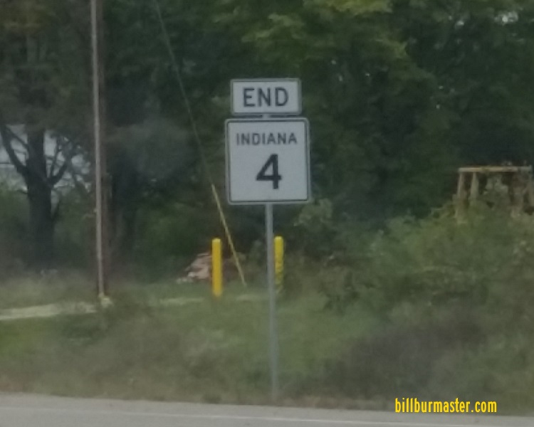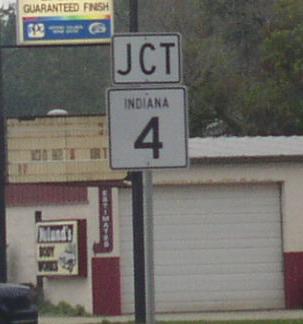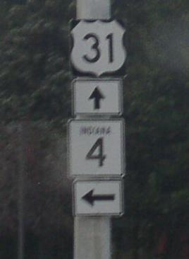 EB IN St Rt 4, east of IN St Rt 931. EB IN St Rt 4 at U.S. Rt. 31. A junction marker on NB U.S. Rt. 31. A BGS on NB U.S. Rt. 31. A BGS on NB U.S. Rt. 31. A BGS on NB U.S. Rt. 31. The eastern end of IN St Rt 4. The eastern end marker.