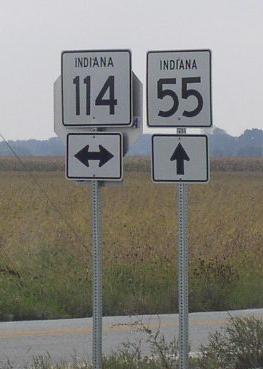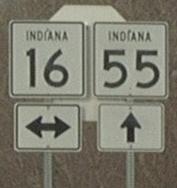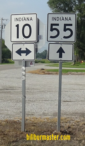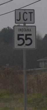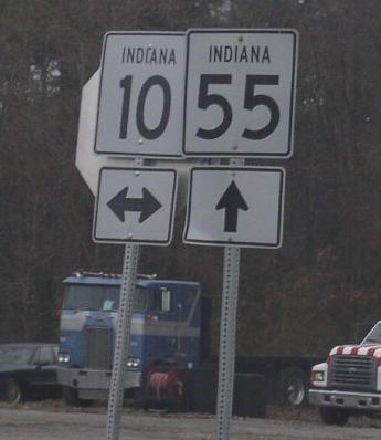 NB IN St Rt 55 south of the Lake/Newton County Line. NB IN St Rt 55 south of Thayer. A junction marker on EB IN St Rt 10. A junction marker on EB IN St Rt 10. SB IN St Rt 55 north of Mount Ayr. SB IN St Rt 55 south of Mount Ayr. SB IN St Rt 55 near Goodland. WB U.S. Rt. 24/SB IN St Rt 55 near Goodland. EB U.S. Rt. 24/NB IN St Rt 55 east of Goodland. SB IN St Rt 55 south of U.S. Rt. 24.