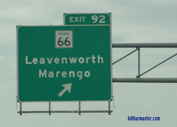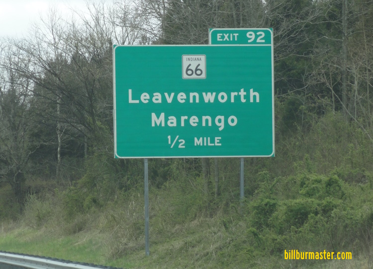 Indiana State Route 66 is a north-south highway in Crawford County. It runs from the Crawford/Perry County Line, near Sulphur. to the Crawford/Washington County Line, near Hardinsburg. IN St Rt 66 intersects the following highways in Crawford County. Sulphur Beechwood Leavenworth Carefree Pilot Knob Marengo Milltown IN St Rt 66 is multi-plexed in Crawford County. Indiana State Route 62, from Sulphur to Leavenworth. Indiana State Route 64, from Marengo to Milltown. IN St Rt 66 intersects the following highways in Crawford County. Indiana State Route 66, at Sulphur. Indiana State Route 237, at Sulphur. Indiana State Route 62, at Leavenworth. Interstate 64, near carefree. Indiana State Route 64, at Marengo. Indiana State Route 64, at Milltown.